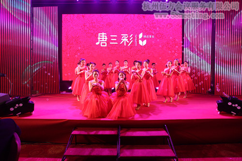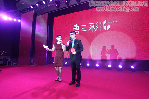 2013年1月16日,杭州唐三彩化妝品杭州公司,在杭州三立開元名都舉辦了2013年周年慶典,杭州伍方為此次活動提供了場地選定、現場布置、晚會用餐、LED布置等相關的會議服務,唐三彩公司自己編排的節目將現場的氣氛推向了高潮。與會者都表示對現場的表演以及活動用餐等都表示十分滿意。而活動現場的主持禮儀等都由自己公司的人員來擔任更是讓人眼前一亮。