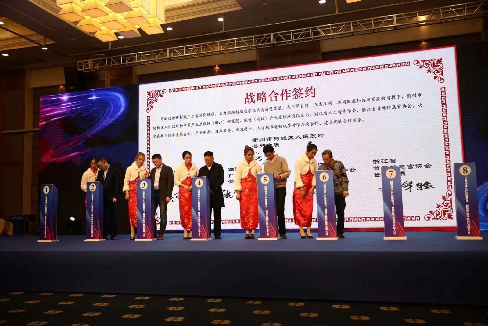 活動名稱:山海協作+產業智慧化—柯城區數字經濟發展大會 活動地點:衢州國際大酒店 活動時間:2019.1.07 會議人數:300+ 服務項目:設計、執行