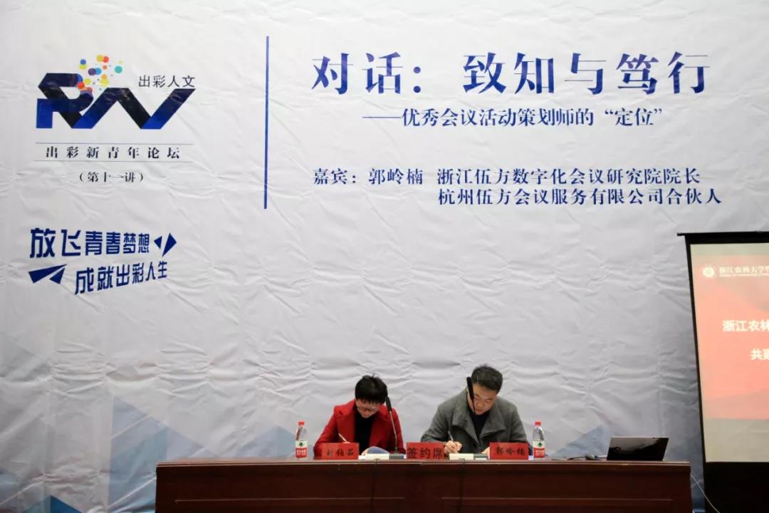 2019年12月11日,浙江伍方數字化會議研究院院長郭嶺楠受邀前往浙江農林大學暨陽學院參加“對話:致知與篤行——優秀會議活動策劃師的‘定位’”新青年論壇。