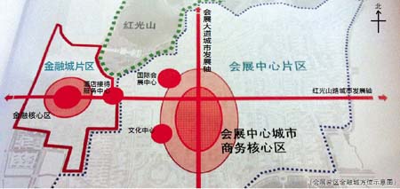 據了解,會展片區金融城位于河灘路東側、紅光山南側,規劃總用地約為1.45平方公里,相當于會展片區總面積的五分之一,總建筑面積約為331.86萬平方米,其中金融類建筑約為261.84萬平方米,占總建筑面積的78.9%,配套服務建筑約為70.02萬平方米,占總建筑面積的21.1%。