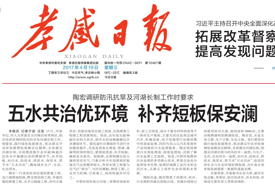 上一篇 孝感日報,市委書記陶宏到我司調研