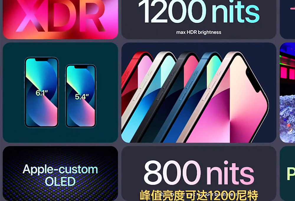 iPhone 13/mini搭載獨家定制OLED屏幕,平均亮度達到800nit,理論峰值亮度達到1200nit,支持HDR10顯示;蘋果獨有陶瓷保護層覆蓋,最高支持IP68級防塵防水;后置雙攝鏡頭采用對角線設計,相比iPhone12系列辨識度更高。顏色上,iPhone13 mini、iPhone13有5種配色,分別是星光色、午夜色、藍色、粉色、紅色,iPhone13 Pro和iPhone13 Pro Max則只有4中配色,分別是銀色、石墨色、金色和遠峰藍色。