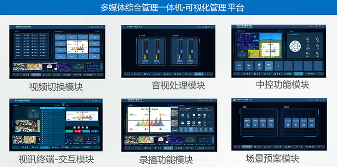 (1)媒體綜合一體機方案融合了六大系統功能模塊,避免了由于多種設備堆積、連接復雜、故障點繁多等造成建設隱患。